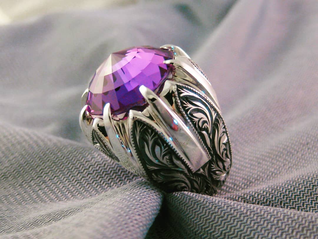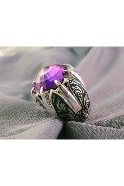 Ametist Taşlı Özel Kalemişi Gümüş Yüzük Nurullah Daştan Usta İmzasıyla