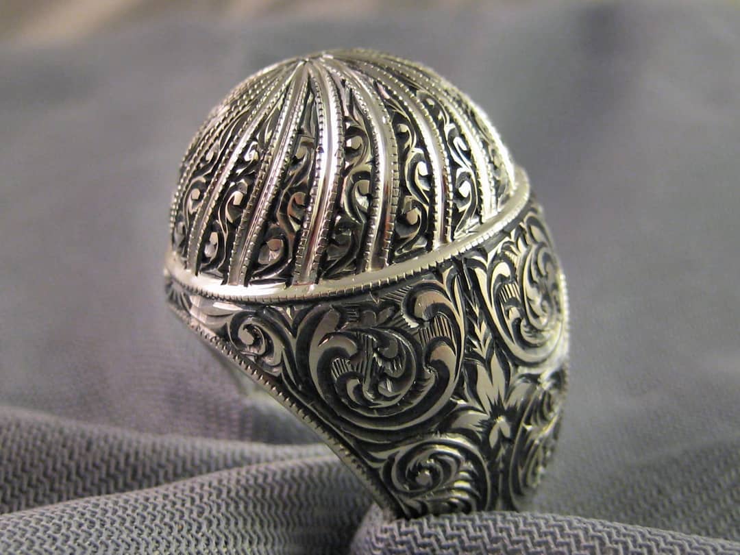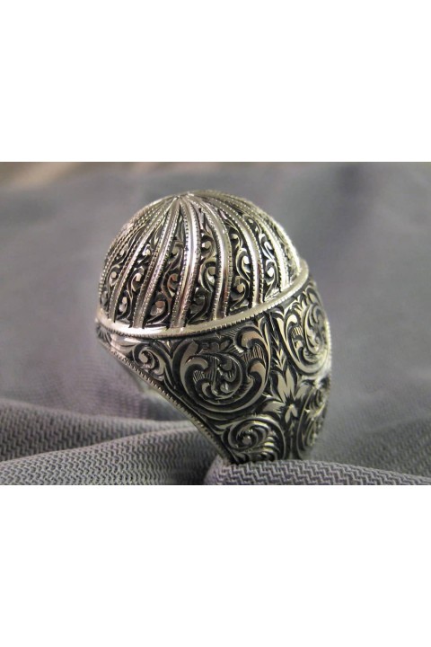 Nurullah Daştan El-Kubbe Özel Tasarım Kalemişi İşlemeli Gümüş Yüzük