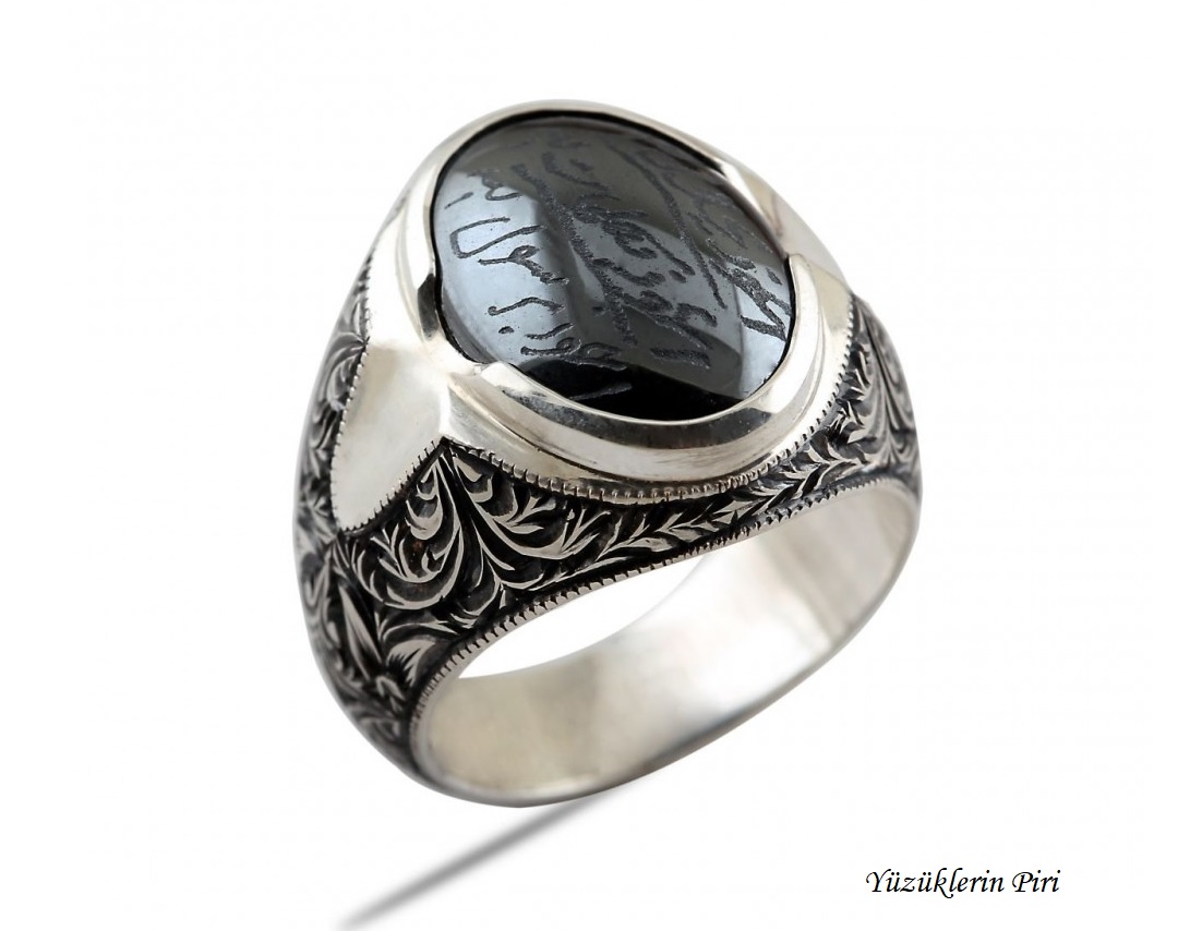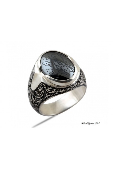 Nurullah Daştan İmzalı Hadid-i Sini Taşlı Özel Kalemişi Gümüş Yüzük