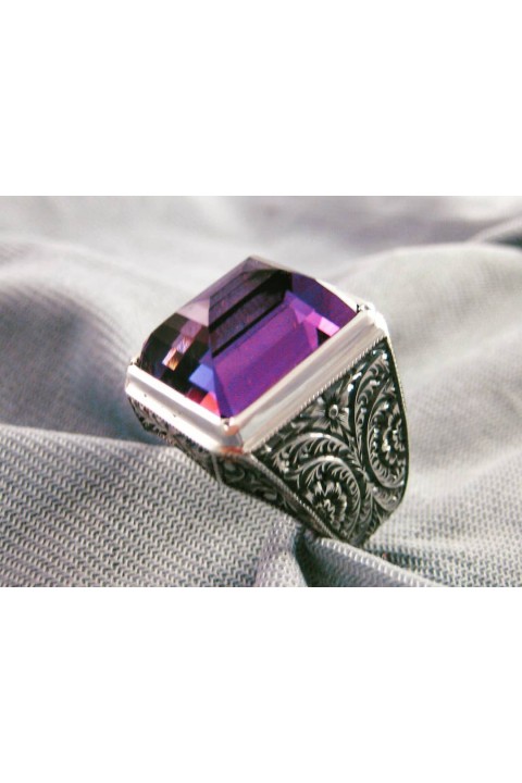 Nurullah Daştan Usta Ametist Taşlı Kalemişi Gümüş Yüzük
