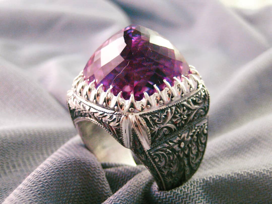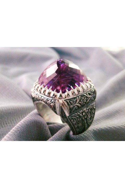 Nurullah Daştan Usta Ametist Taşlı Özel Tasarım Kalemişi Gümüş Yüzük